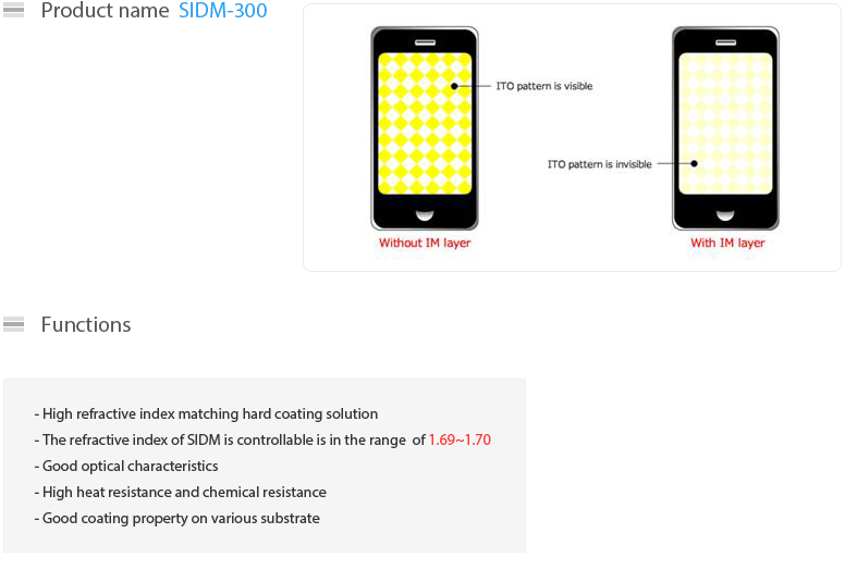SIDM-300 (High Reflective Index Matching Hard Coating Solution)