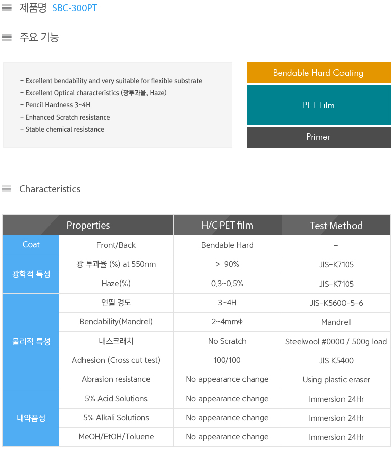 SBC-300PT (Bendable Hard Coating Solution for PET)
